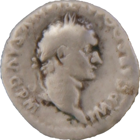 Avers: efigie Domitian, laureat, spre dreapta: IMP CAES DOMITIANVS AVG PM