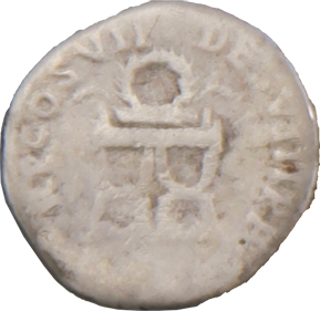 Revers: coroană de lauri pe un scaun curul, titulatură COS VII DES VIII P P