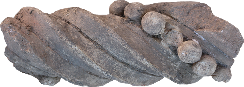 Piesa făcea parte inițial dintr-o structură arhitecturală renascentistă timpurie. Este o bănuială a arheologilor care au săpat în arealul ce circumscrie această parte din ansamblul Palatului Principilor. Exponatul este un fragment de coloană răsucită, asemănătoare unei funii împletite, ornată cu o decorație care dă impresia unui șirag de mărgele. Am ales această piesă pentru eleganța execuției sale care demonstrează calitățile excepționale ale atelierului de pietrari din care provine. Nu prea poți fi mereu sigur de cine a executat decorarea unui monument anume, cu toate aceste filiere prin care au circulat meşterii și modelele lor în acele vremuri, dar pare că acești pietrari nu erau de pe meleagurile noastre. Cele mai apropiate analogii cu modul de execuție a piesei noastre regăsim la edificiul Primăriei Bardejov (Slovacia), construită între anii 1506-1511, sub influența arhitecturii renascentiste timpurii sud-germane.